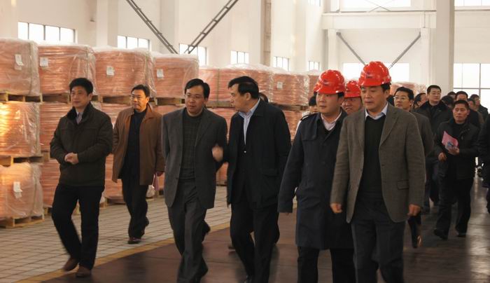 12月21日上午,在市長王中蘇的陪同下,寶應(yīng)縣黨政代表團來公司參觀考察。總經(jīng)理駱偉棟熱情接待了代表團一行,并介紹了公司的發(fā)展歷程和前景。代表團參觀了SCR銅桿車間、復(fù)合銅線車間、銅絞線車間。