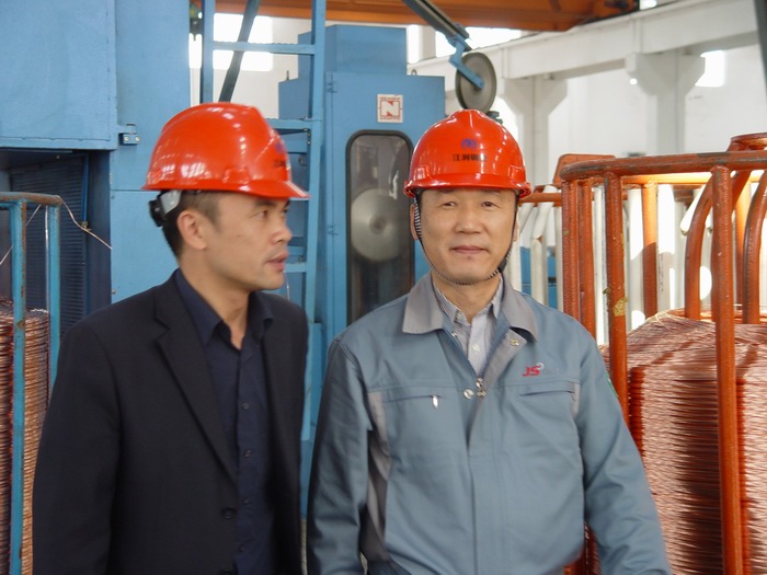 2010年10月15日,JS電纜(江蘇)有限公司金董一行來江潤銅業(yè)考察訪問,分別參觀了SCR-7000銅連鑄連軋生產(chǎn)車間、復合銅線車間、銅絞線車間。江潤銅業(yè)先進的設備、優(yōu)質的產(chǎn)品給金董留下了很深的印象。JS電纜是韓國LS集團下屬子公司,產(chǎn)品涉及船舶用、深海用、移動電梯用等橡套特種電纜,在同行業(yè)中排名全球第五、亞洲第一。江潤銅業(yè)與JS電纜有著多年的業(yè)務往來。